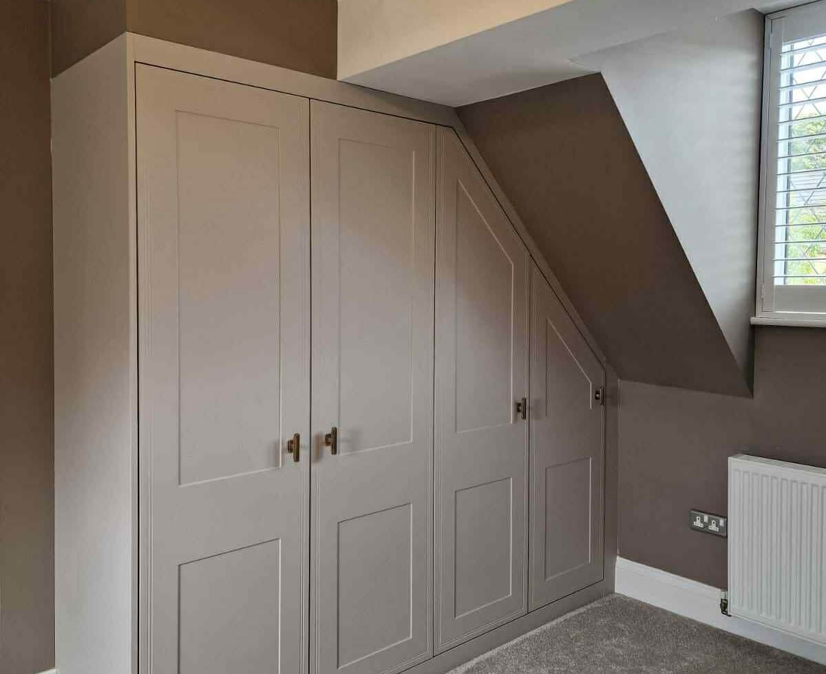 If you’ve got a larger room, or you like a more traditional layout, hinged wardrobes are a fantastic choice. They also work well in awkward spaces, like angled ceilings or alcoves, where we can tailor each door size individually.